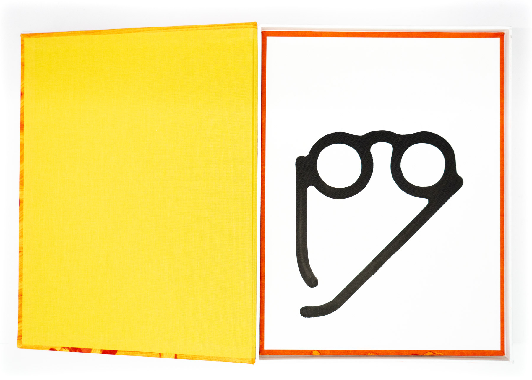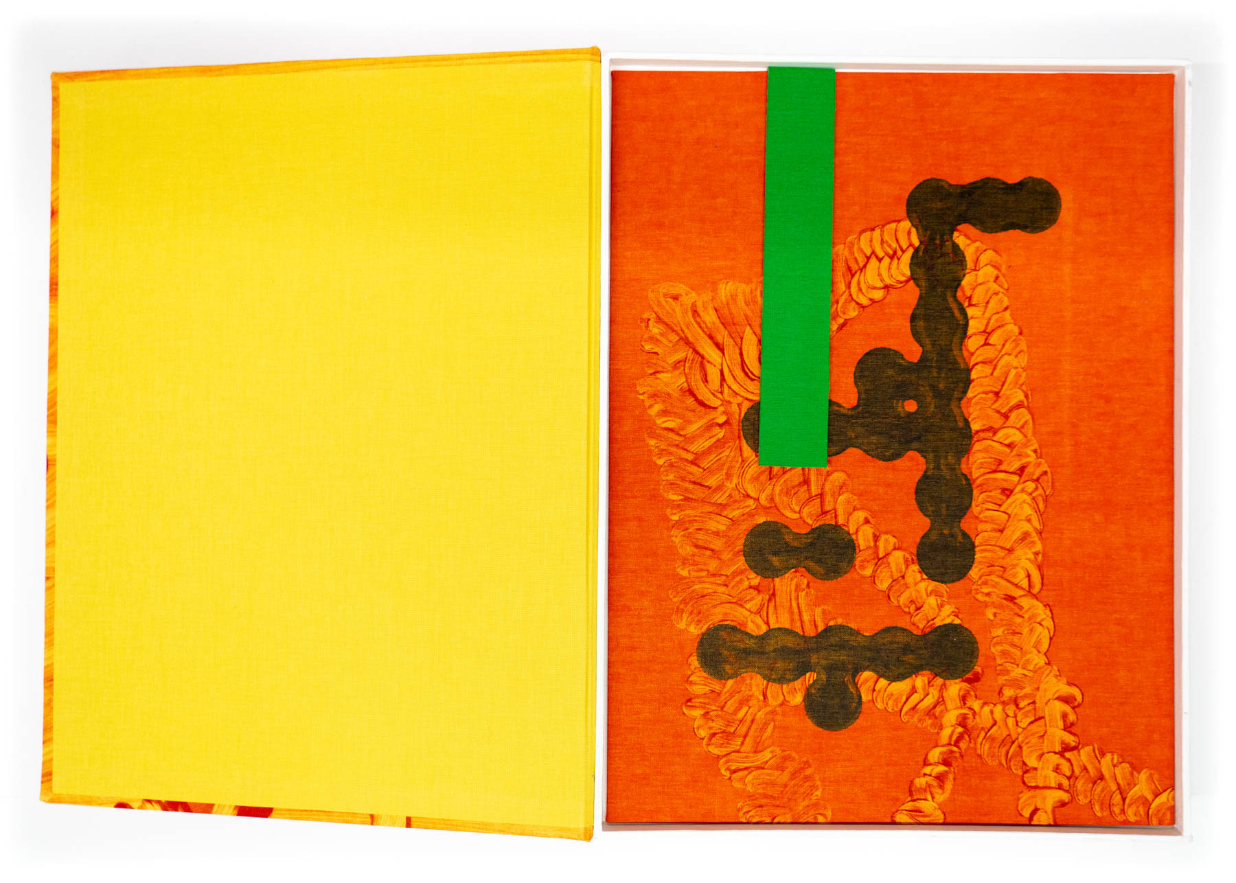 bookbinding linen, cardboard, aluminum, ink on paper, monotypes